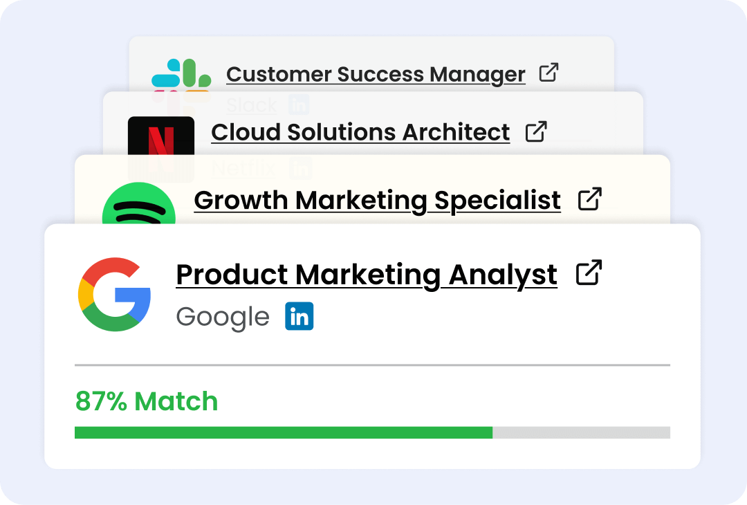 Get roles that actually fit you, with clear match scores. If you’re unsure what you want, our coaches help you define and refine your goals.